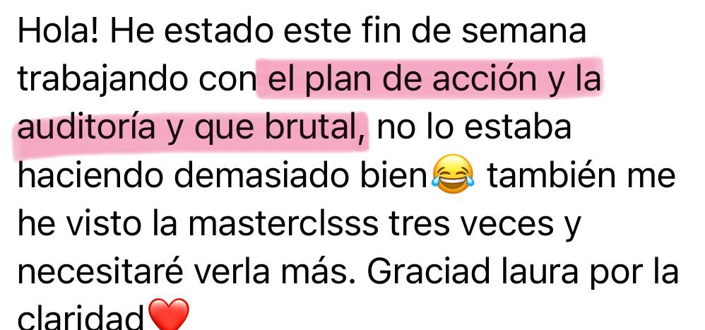 Empezamos con lo más intensivo. En esta masterclass auditaremos juntas nuestro negocio y podremos ver con más claridad que áreas necesitan total atención.